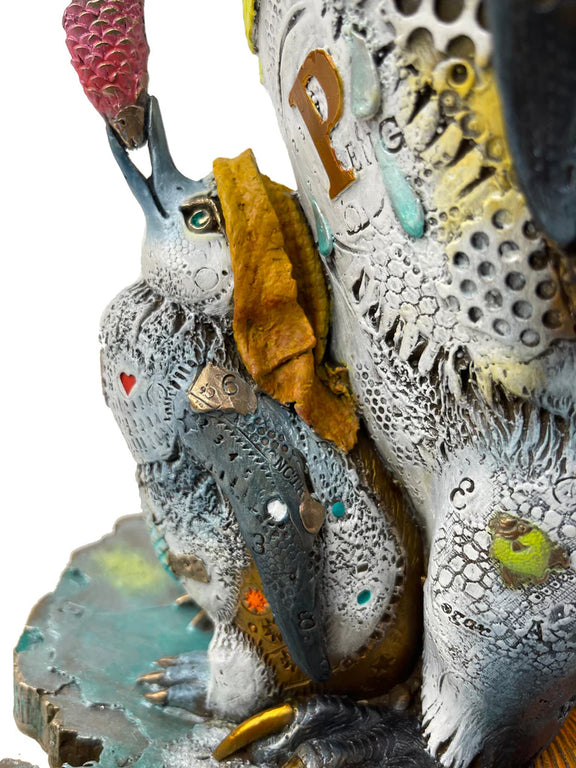 Nanimals evoke the magic of seeing the world again for the first time with the eyes of a child. In his artistic process, Nano integrates organic textures and human made objects into his bronzes to create pieces of art that reflect the same attention to the magic, wonder, and creativity that children find in the world around them.