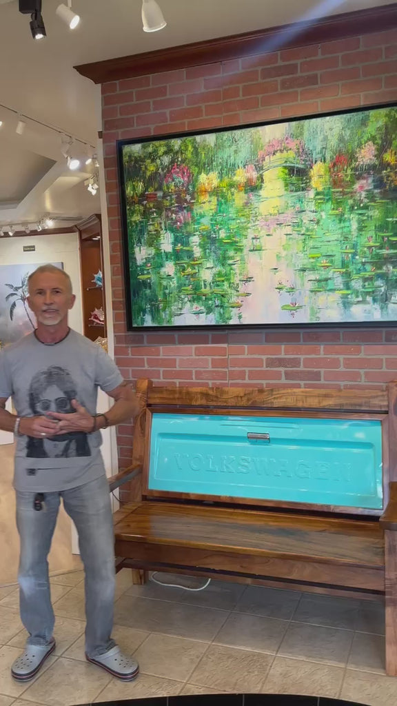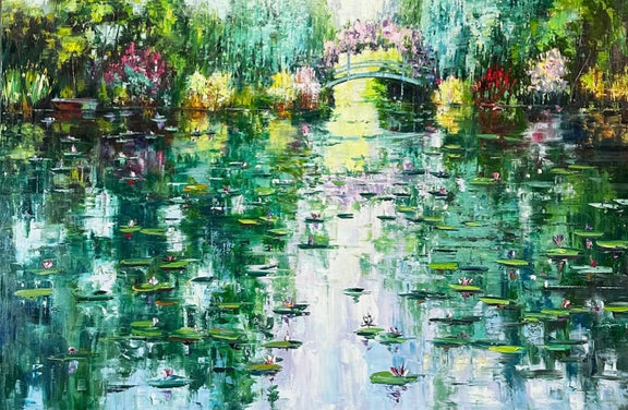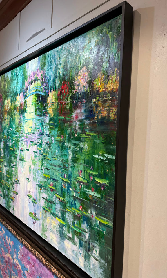 With inspiration drawn from Roman's countless visits to Claude Monet's renowned gardens in Giverny, this 40x60 framed masterpiece captures the grandeur of the artist's iconic water features and floral splendor, evoking a sense of enchantment and wonder.